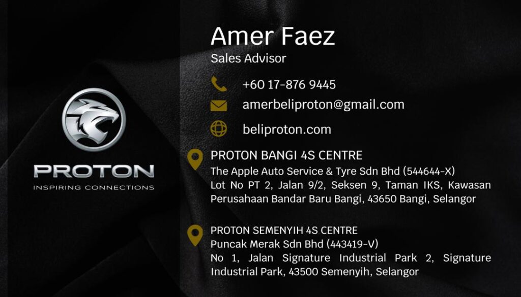Hai, saya Amer, Sales Advisor Proton yang sah dengan pengalaman lebih 7 tahun. Saya telah membantu ramai pelanggan memiliki kereta Proton baru, dari pemilihan hingga urusan pinjaman dan penyerahan.